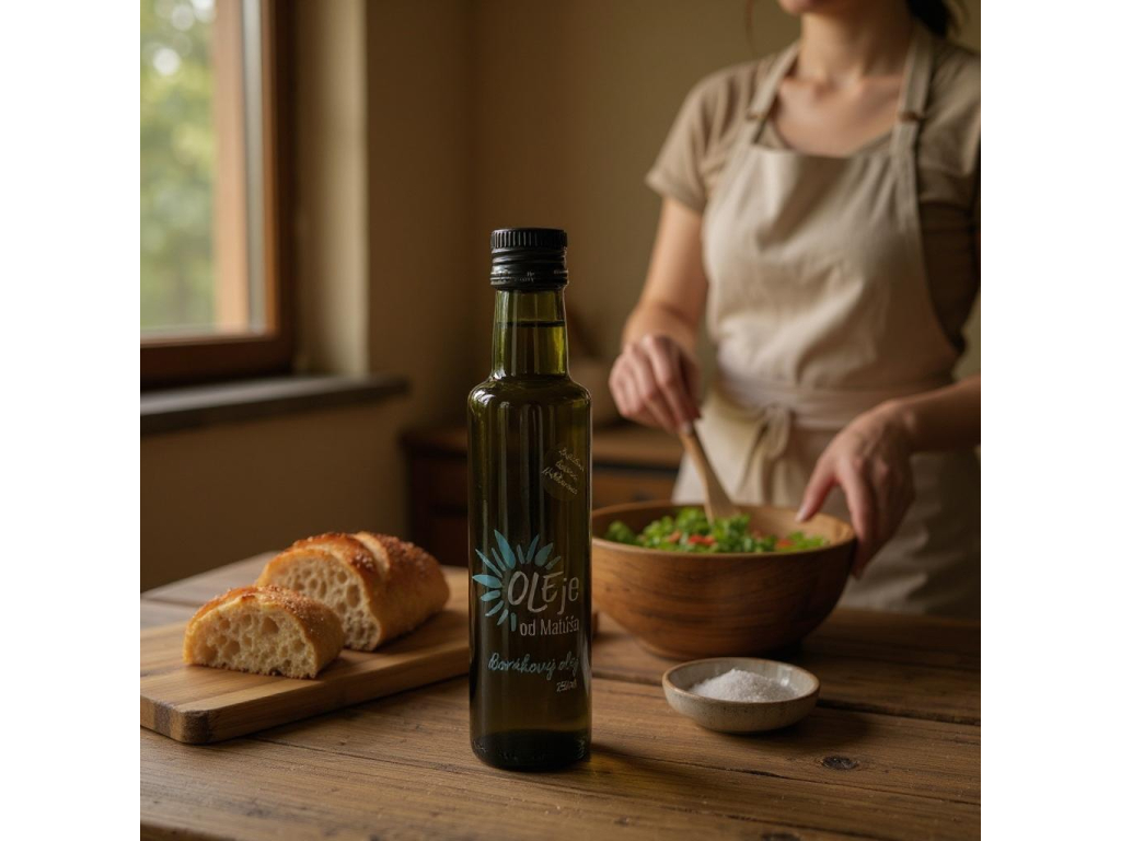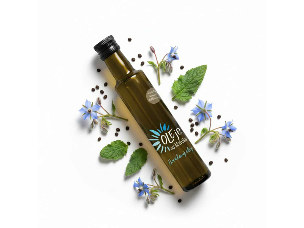 Brutnákový (borákový) olej lisovaný za studena ze semen brutnáku lékařského. Vysoký obsah GLA (kyseliny gama-linolenové), omega-6 a vitamínu E. Může podpořit zdraví pokožky, hormonální rovnováhu i imunitu.