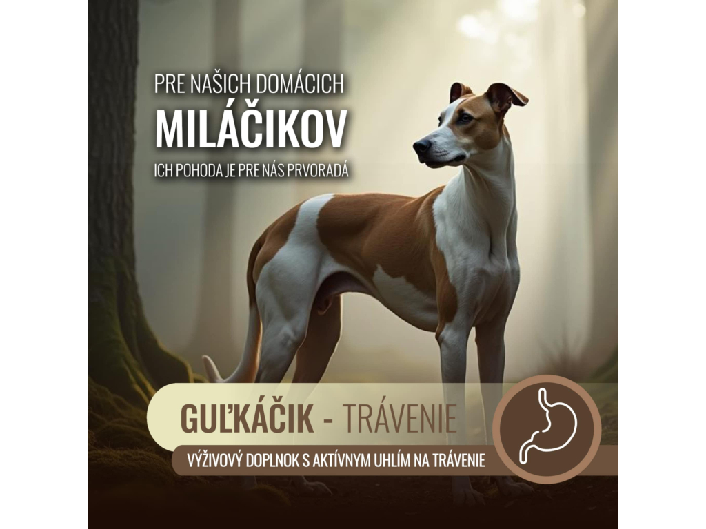 GUĽKAČIK s aktivním uhlím je přírodní a rychle působící řešení při zažívacích potížích psů všech velikostí. Vhodný pro běžné použití doma i na cestách.