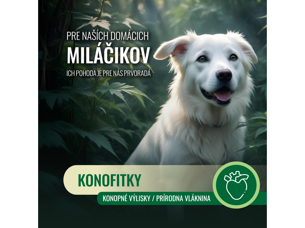 Naše Konofitky mohou pomoci zvířatům všech plemen a velikostí – psům, kočkám i hlodavcům. Jsou vyrobené z výlisků po lisování konopného oleje a zachovávajú všetky výživové benefity konopných semien. Obsahujú kvalitný rastlinný proteín, vlákninu a nenasýtené mastné kyseliny, ktoré pozitívne ovplyvňujú trávenie, pohybový aparát, srsť a celkovú vitalitu zvieraťa.
