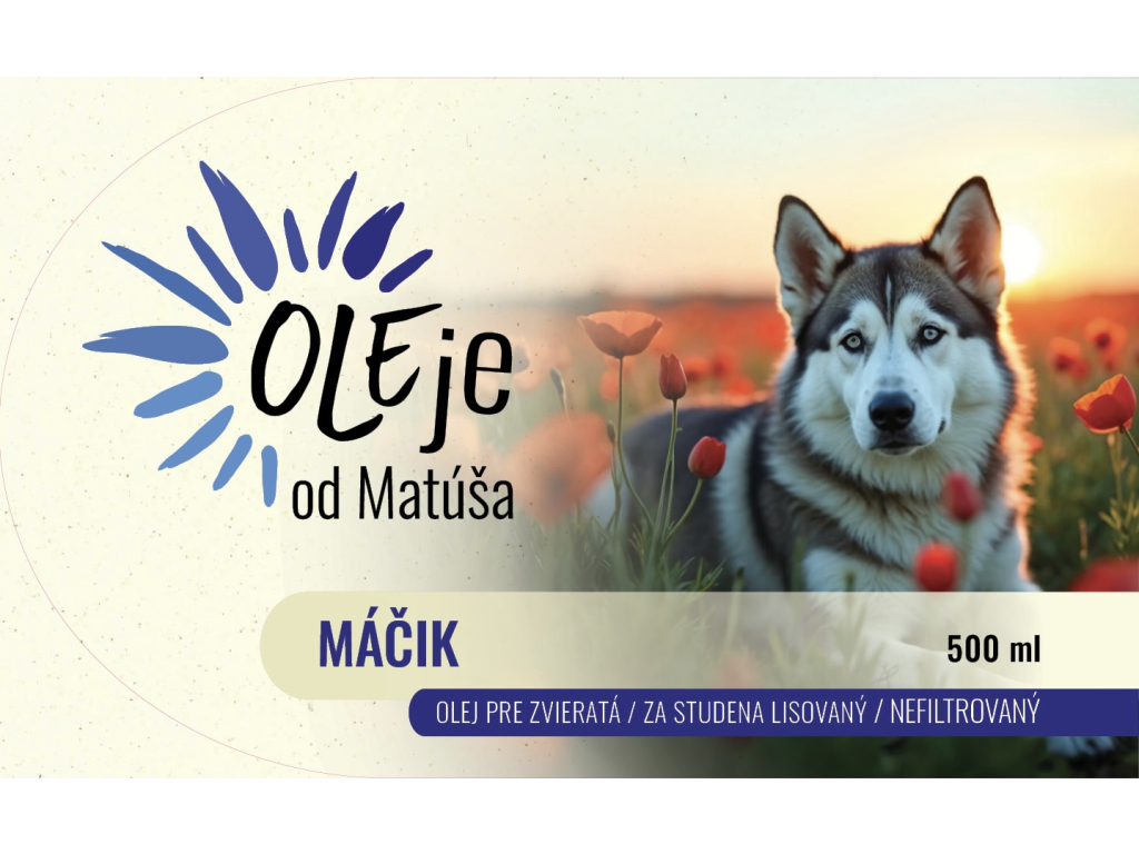 Představujeme vám MÁČIK, náš nový přírodní olej pro psy. Lisujeme ho za studena ze 100 % českého máku