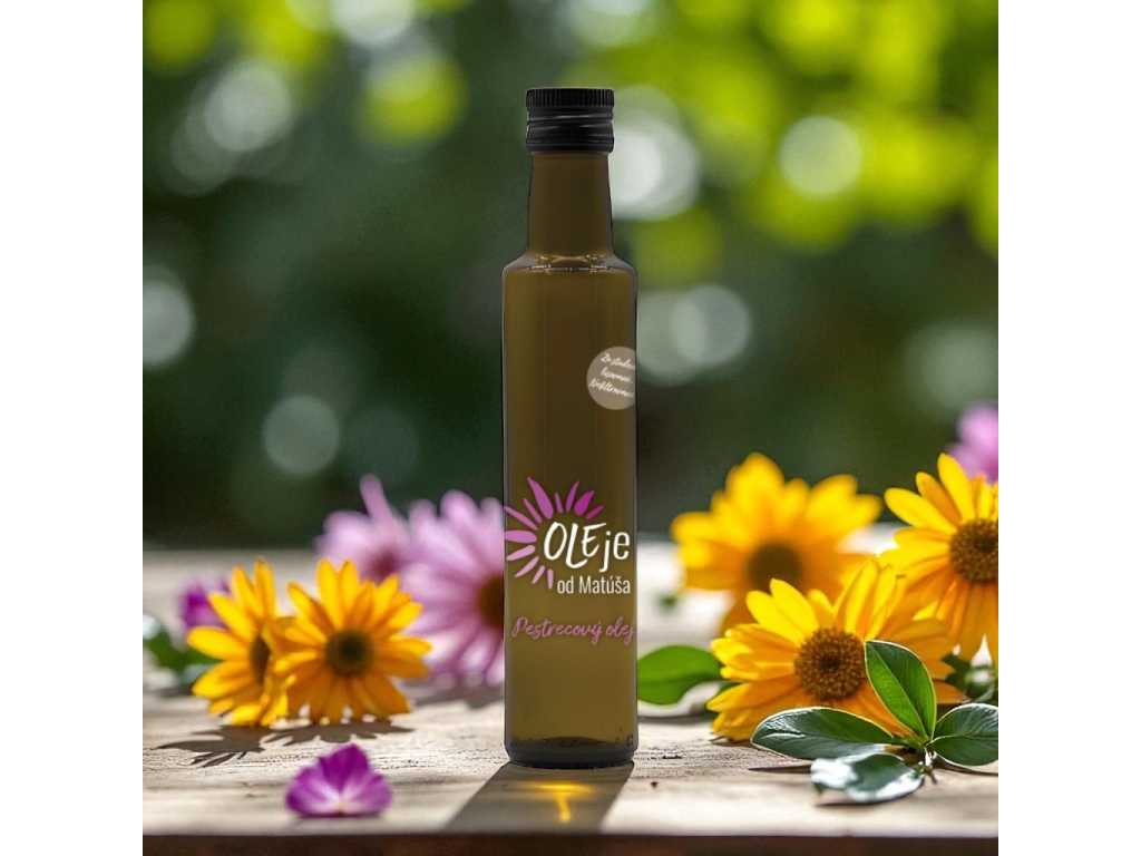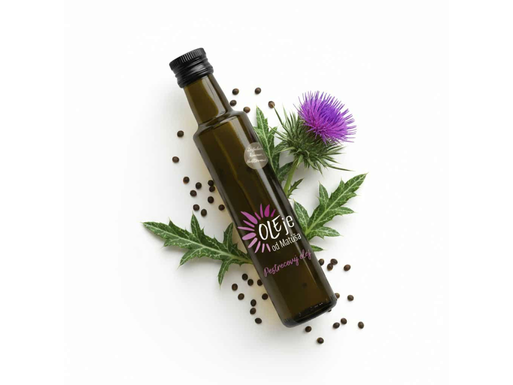 Pestřecový olej lisovaný za studena ze semen ostropestřce mariánského. Bohatý na silymarin, antioxidanty a zdravé tuky. Může podpořit funkci jater, regeneraci a očistu těla.