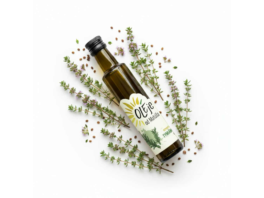Tymiánový olej přináší do kuchyně silnou aromatickou chuť. Využijete ho do marinád, salátových zálivek, omáček i k masu a zelenině. Je ideální pro gurmány, kteří chtějí zvýraznit chuť svých jídel přírodně a bez námahy.