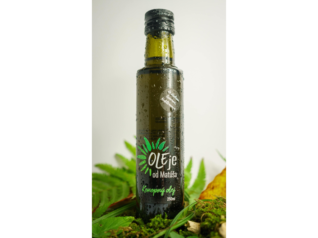 Konopný olej je výnimočný svojím zložením – obsahuje až 80 % nenasýtených mastných kyselín a ideálny pomer omega-6 a omega-3 (3:1). Je bohatý na vitamín E, fytosteroly a chlorofyl, ktoré podporujú detoxikáciu a regeneráciu organizmu.
