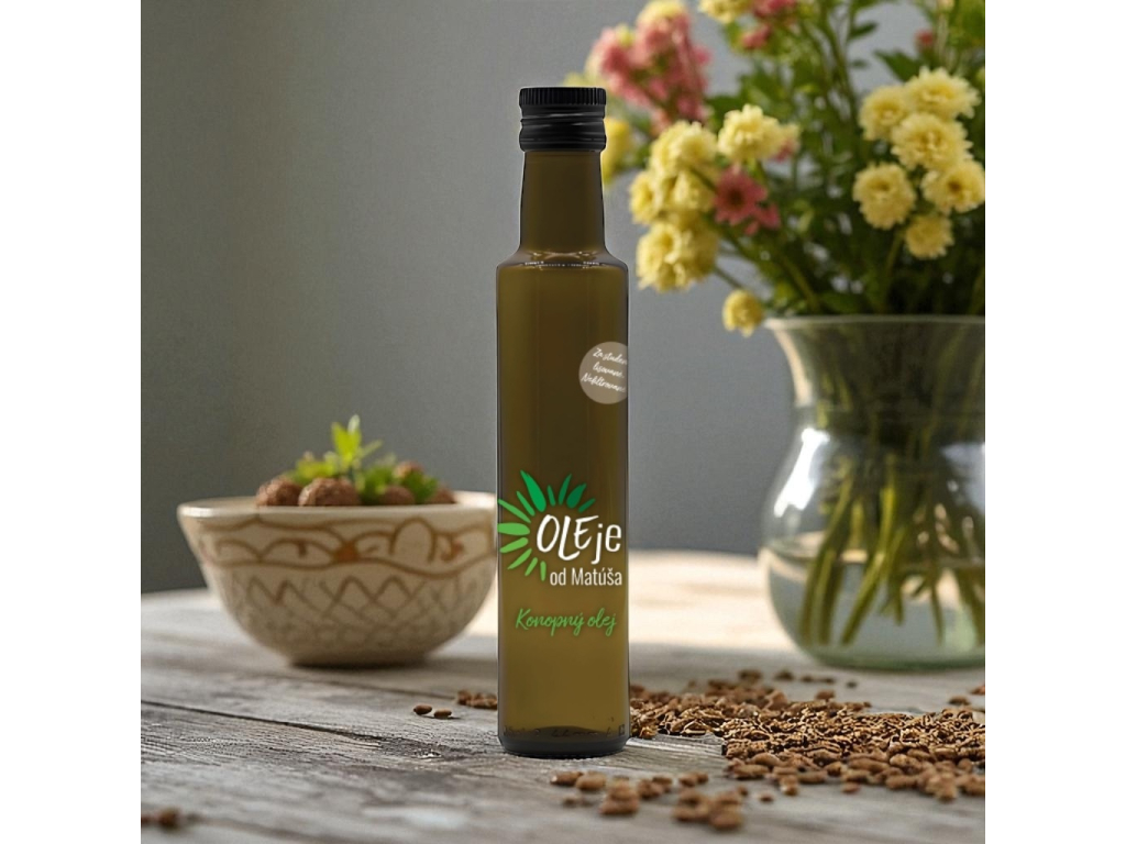 Má jemne orieškovú chuť a výborne sa hodí na každodenné používanie – či už na podporu imunity, pre zdravú pokožku, alebo do studenej kuchyne. Používame výhradne certifikované konopné semienka odrôd Henola a Finola, ktoré neobsahujú THC.